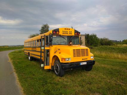 Ein US School Bus als rollstuhlgerechtes Wohnmobil.
