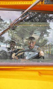 Ein US School Bus als rollstuhlgerechtes Wohnmobil.