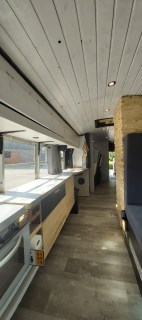 Ein US School Bus als rollstuhlgerechtes Wohnmobil.